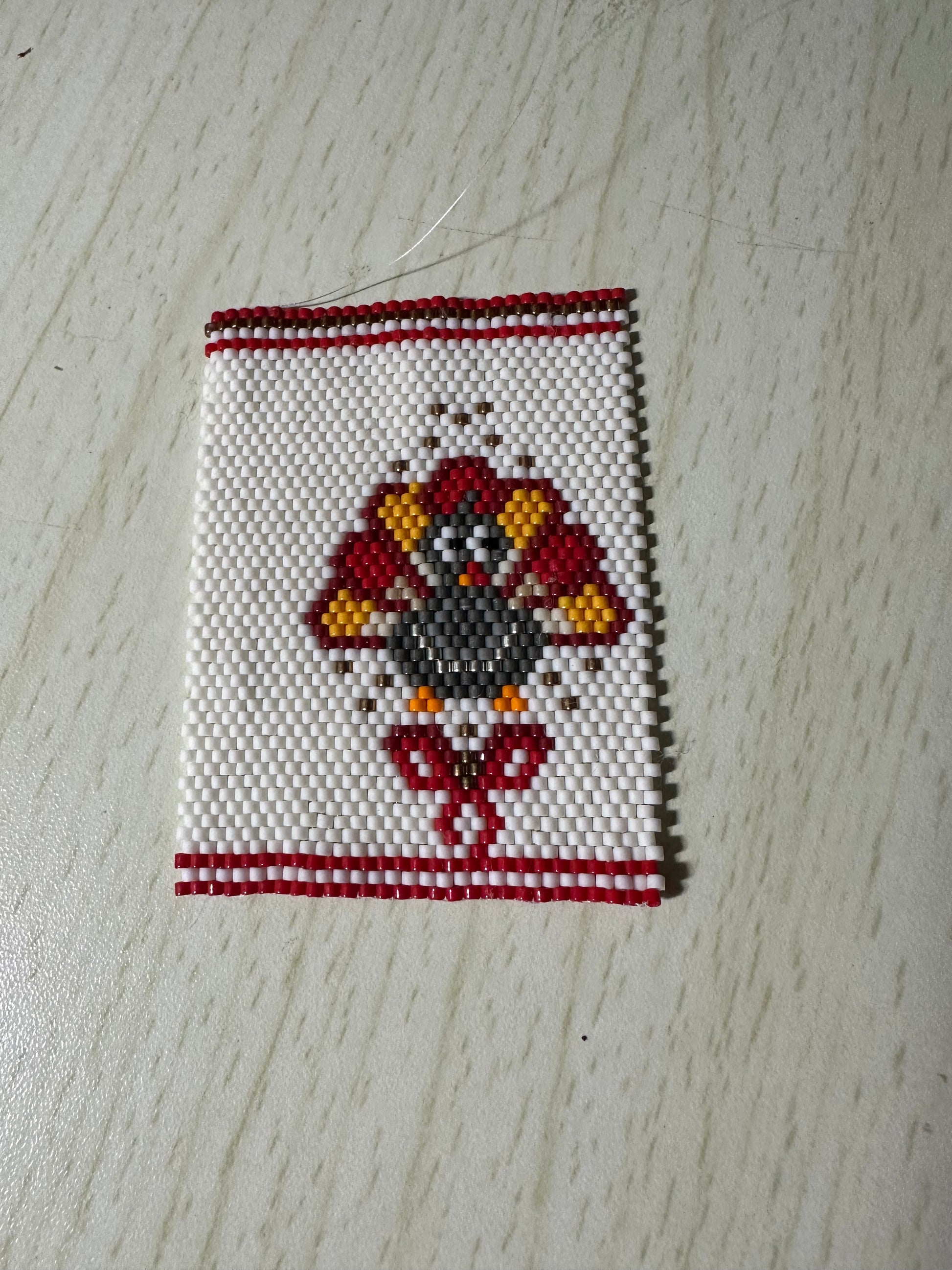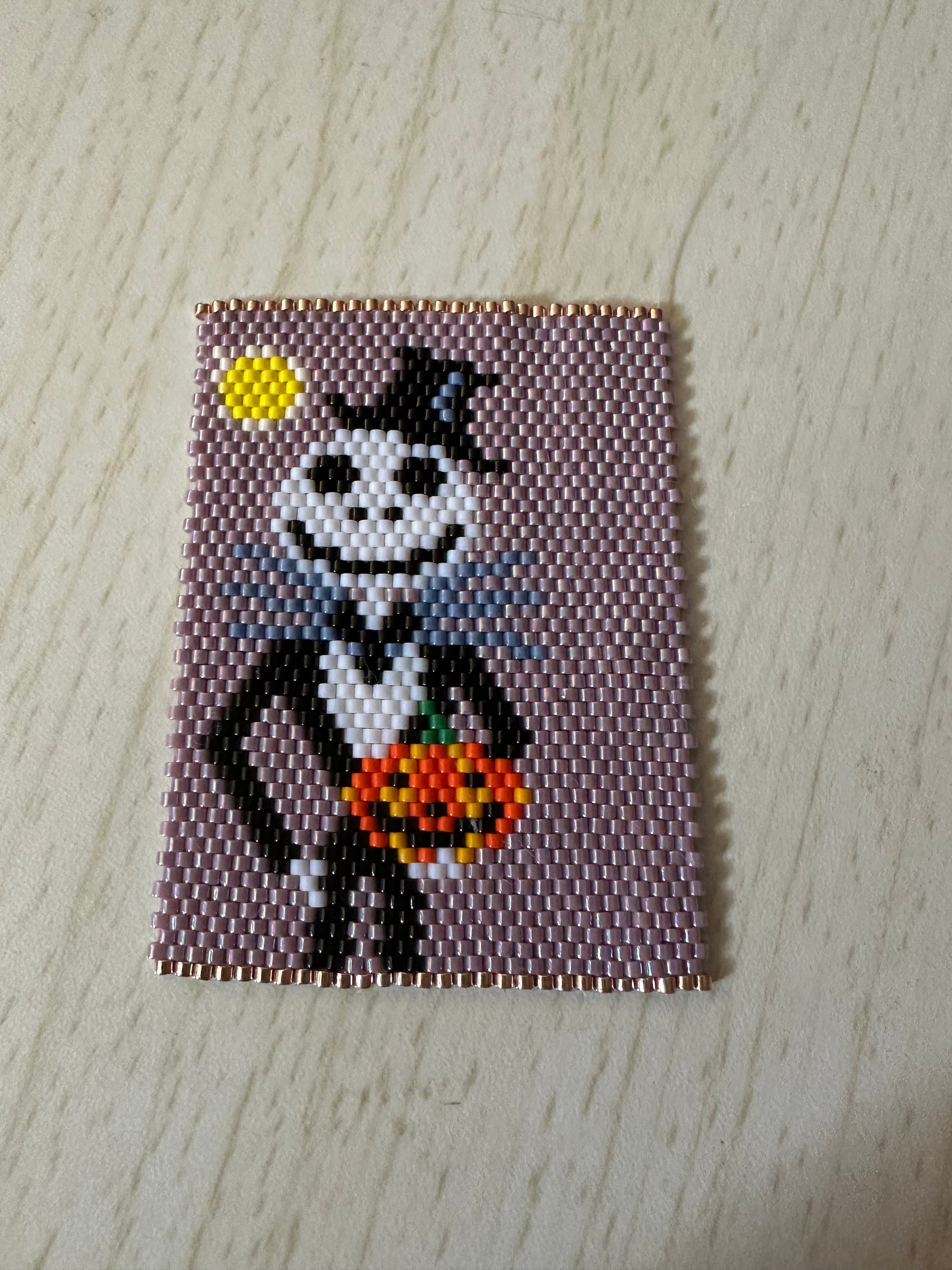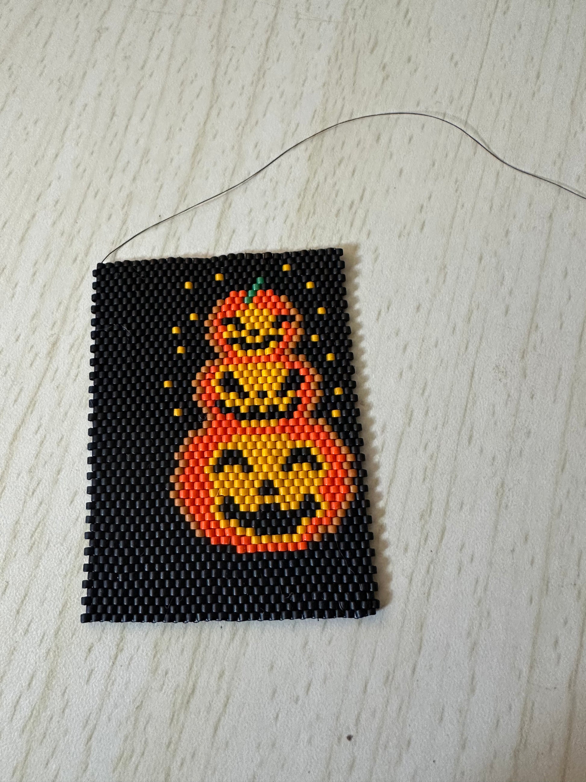 Hand beaded using glass beads. Refillable pen is ideal for softer putties or wax.
