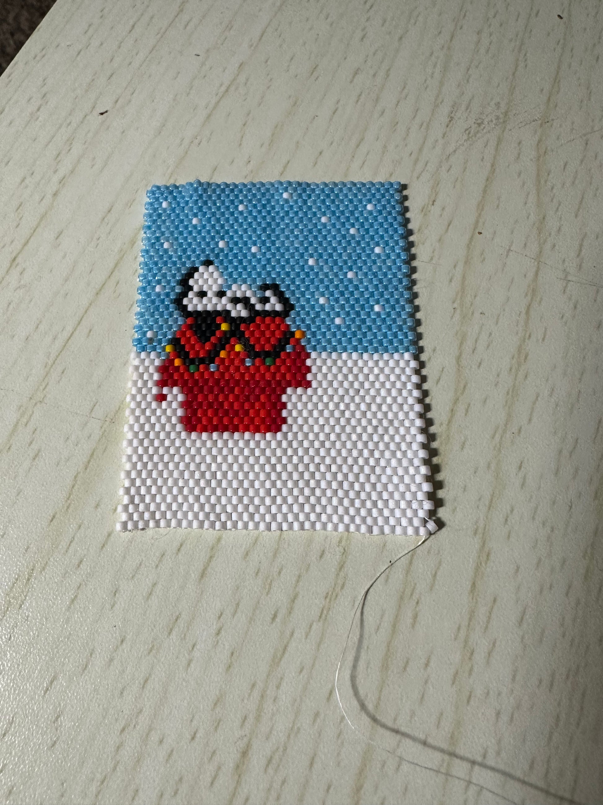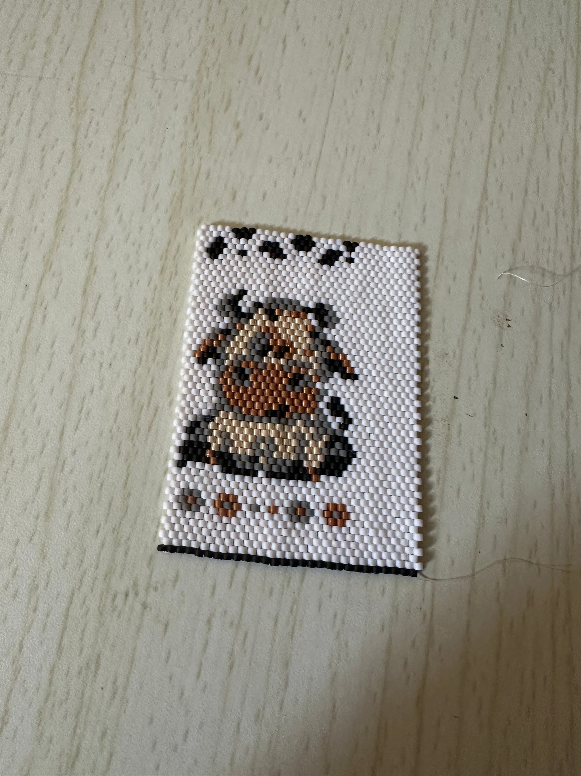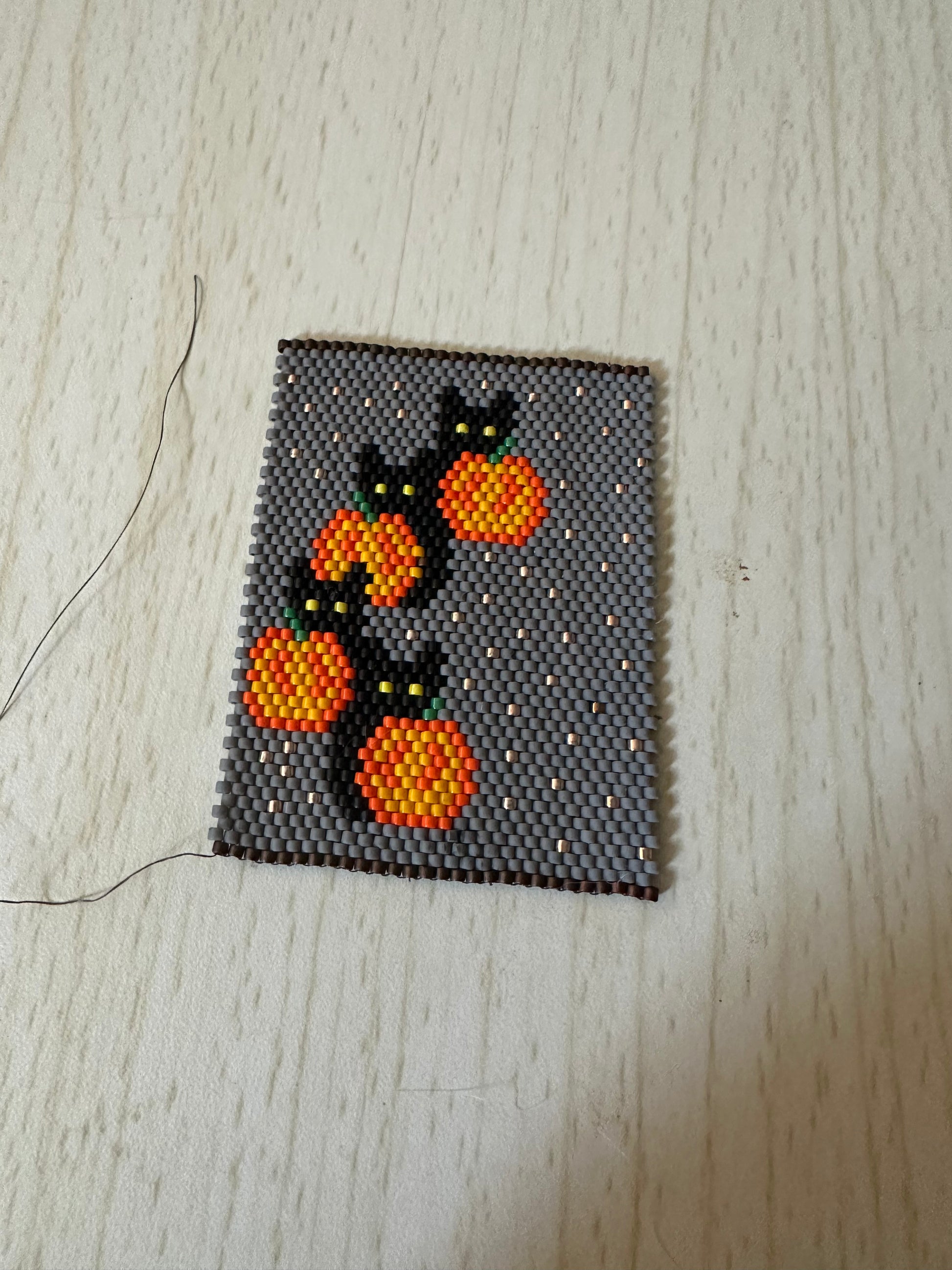 Hand beaded using glass beads. Refillable pen is ideal for softer putties or wax.